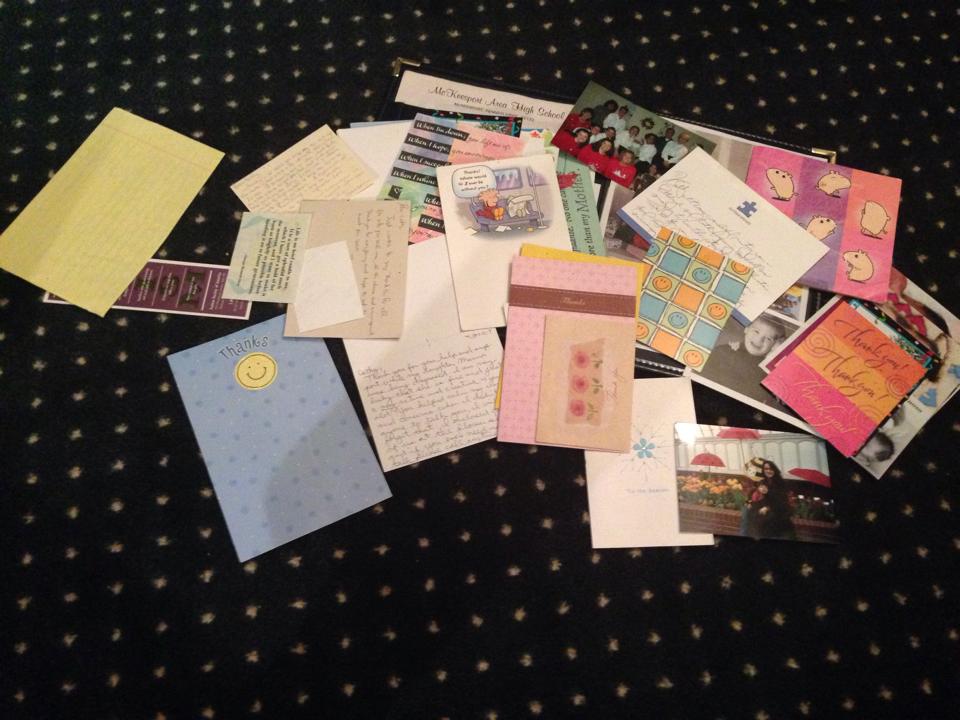 This photo was the image I remembered posting years ago from my office – the “bully free zone” as my old Service Center team will no doubt recall (the “safe space” before safe spaces were a “thing”). I dropped my beat up 1996 Penn State McKeesport leather folder that day from my desk. The folder contained a pile of notecards, letters and trinkets sent to me from people who told me how much my support meant to them. Many were mothers of children and teens with autism, but there were a few who were self-advocates (er, activists) or other community connections. Handwritten notes are a sign that you touched someone’s mind, heart in soul so much that you were worth a few extra minutes of gratitude. This picture documents a small sampling of the lives I have been privileged to touch by not only providing information and resources, but by exuding transparency, repetitively opening old scars, and being as real as I can be through sharing my story. It is true when it is said that it is truly selfish to keep our story to ourselves.